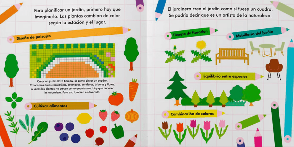 Un libro que invita a los niños a convertirse en jardineros por un día: observar la naturaleza, entender las estaciones, cuidar plantas y diseñar su propio huerto. Ofrece una experiencia manual y educativa combinando lectura, ilustración y juego con pegatinas, estimulando la creatividad y el vínculo con el entorno natural.