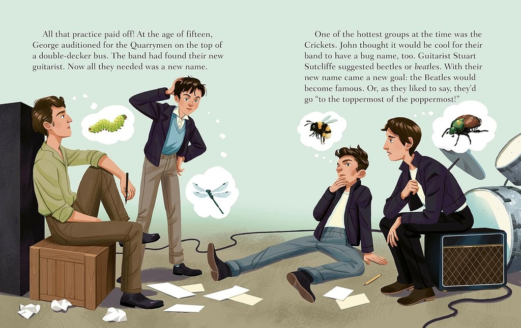 Este encantador libro ilustrado cuenta la historia de cuatro jóvenes de Liverpool que cambiaron la música para siempre: John, Paul, George y Ringo. Desde sus primeros días tocando en pequeños escenarios hasta convertirse en la banda más influyente del mundo, este libro introduce a los más pequeños en el legado de The Beatles con un lenguaje accesible y lleno de inspiración.