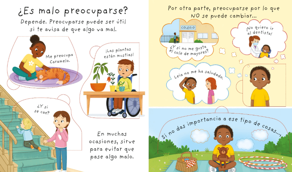 Este libro con solapas explora las emociones desde una mirada comprensiva y amigable, centrada en el miedo. A través de preguntas que los niños suelen hacerse, como «¿Por qué tengo miedo?», «¿Es malo sentir miedo?» o «¿Cómo puedo sentirme más valiente?», el libro ofrece respuestas claras y reconfortantes. Con ilustraciones suaves y solapas que revelan datos y consejos, es ideal para fomentar la conversación emocional desde temprana edad.