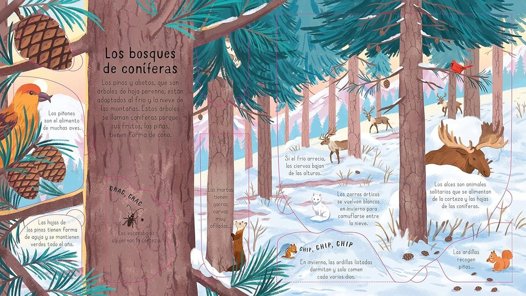 Los lectores se adentran en un frondoso bosque junto con aves, ardillas, zorros y osos. A medida que levantan solapas debajo de las hojas y ramas, descubren información sorprendente, como la importancia de los árboles para el planeta. Ideal para primeras exploraciones del entorno natural mediante ilustraciones amigables e interactivas.